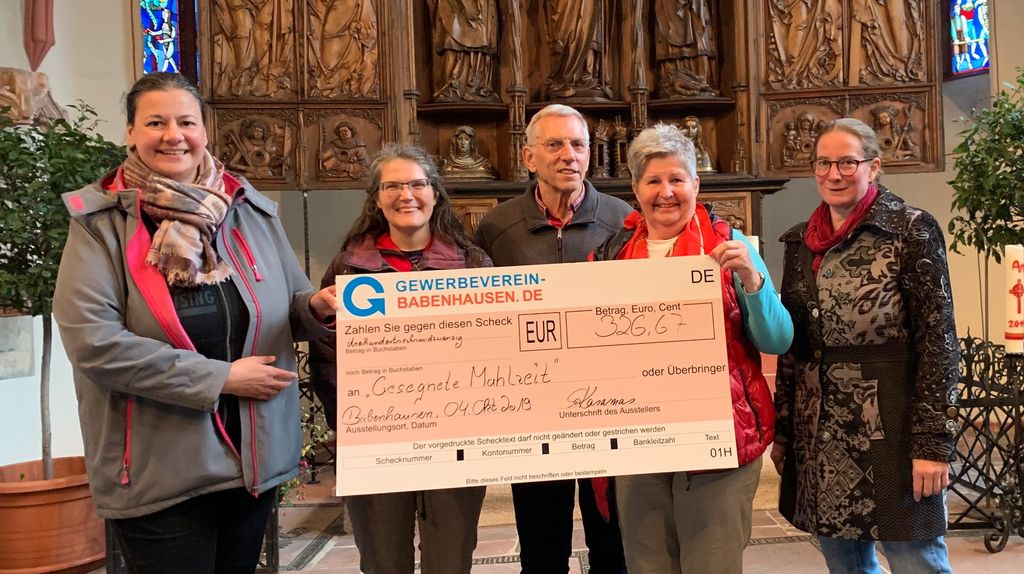 Spende vom Gewerbeverein für "Gesegnete Mahlzeit" am 4. Oktober